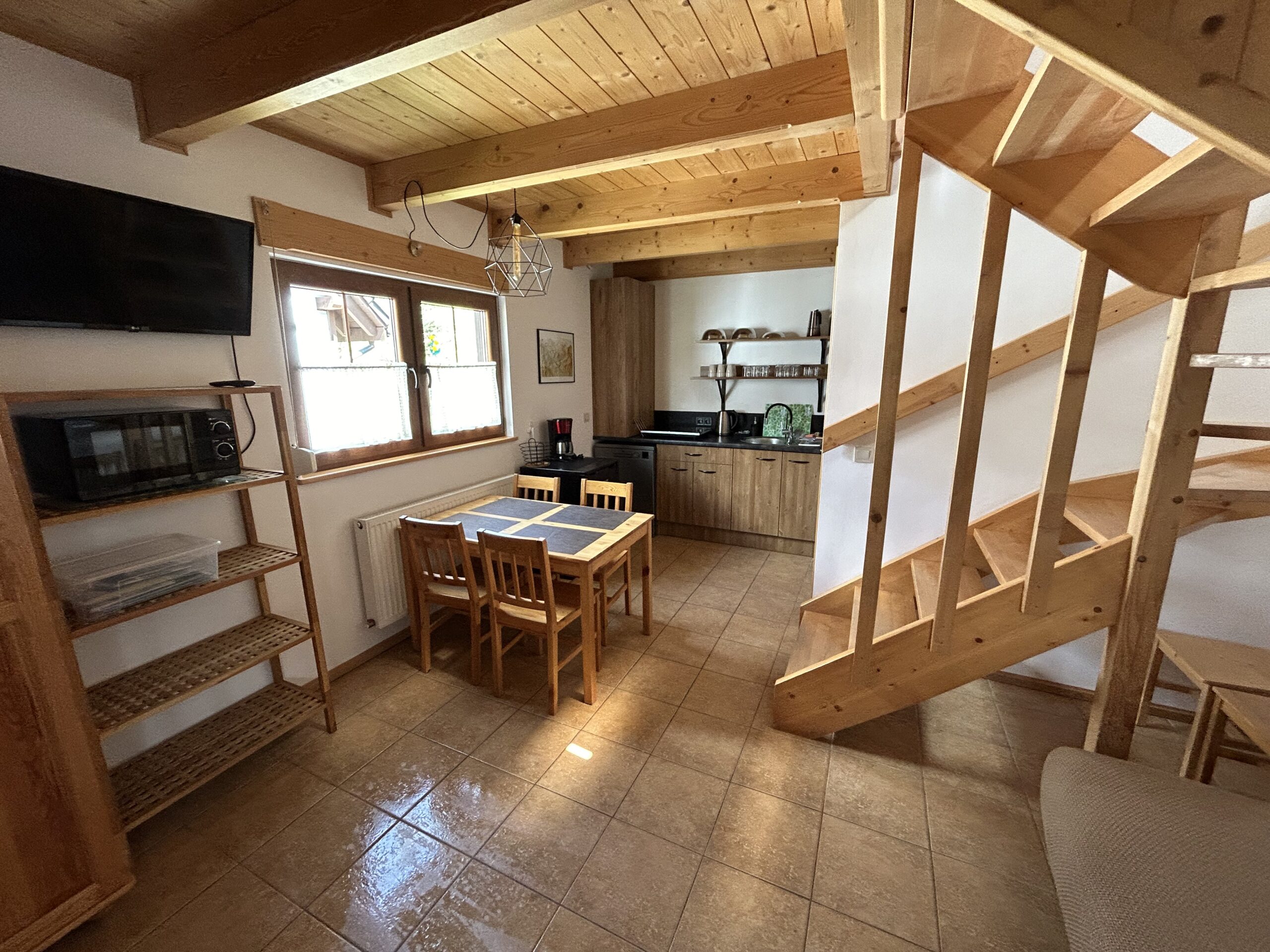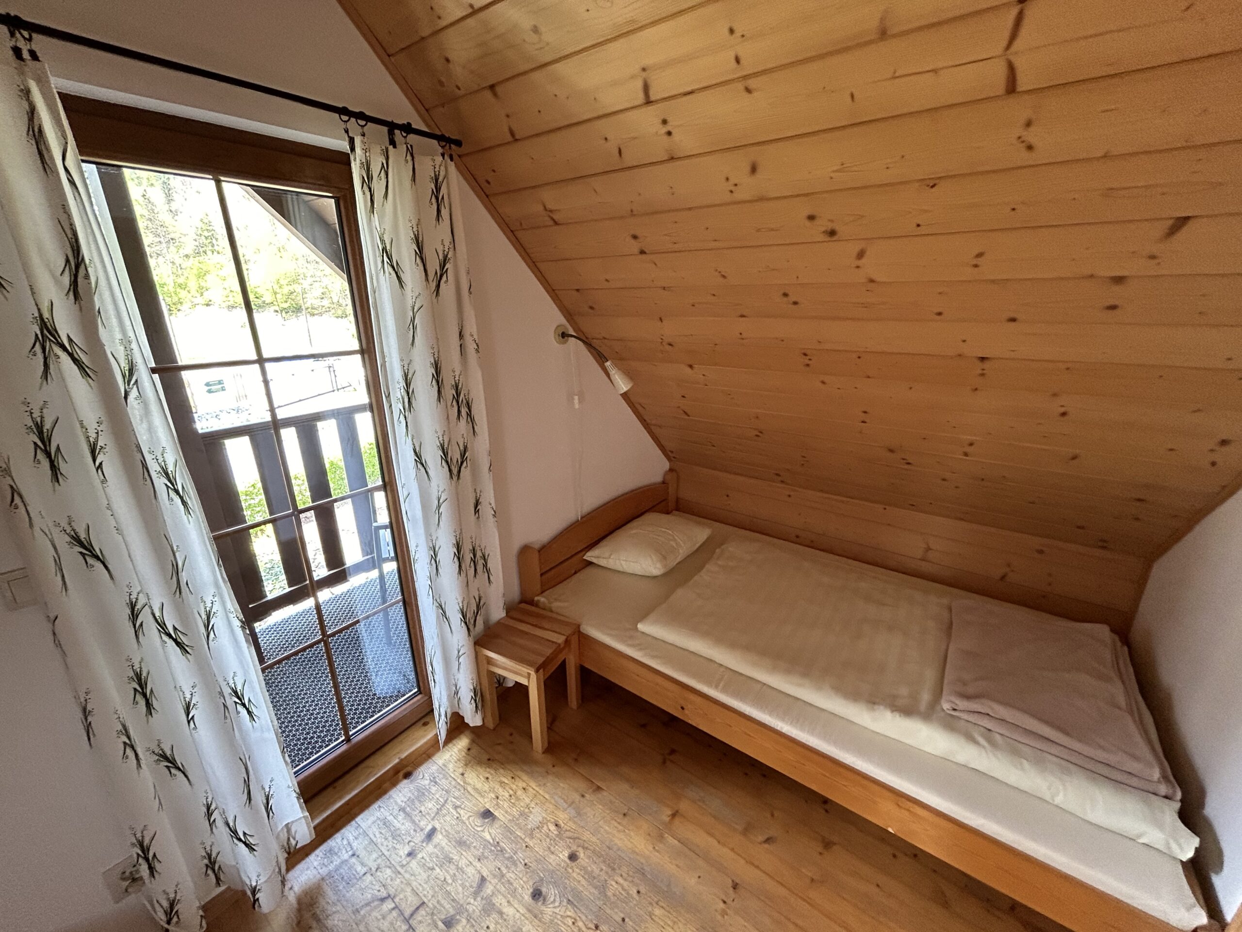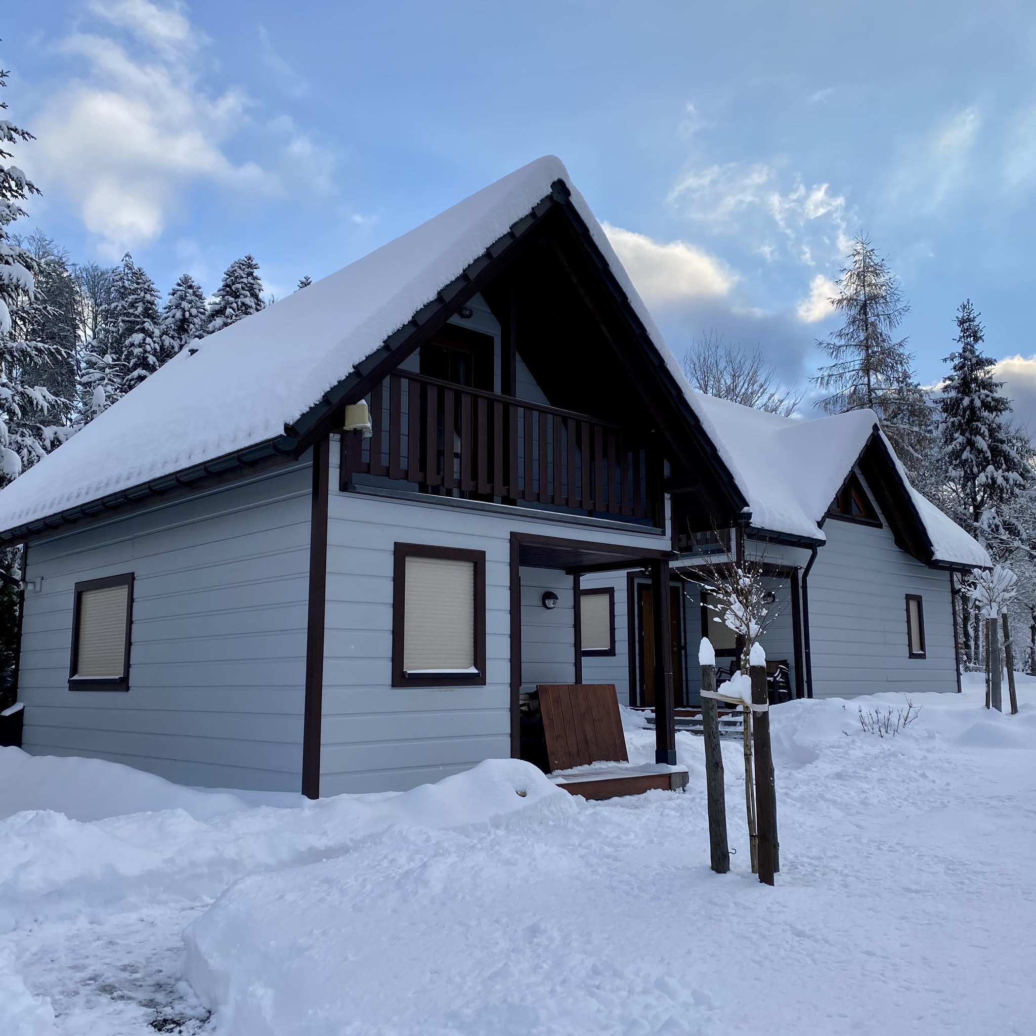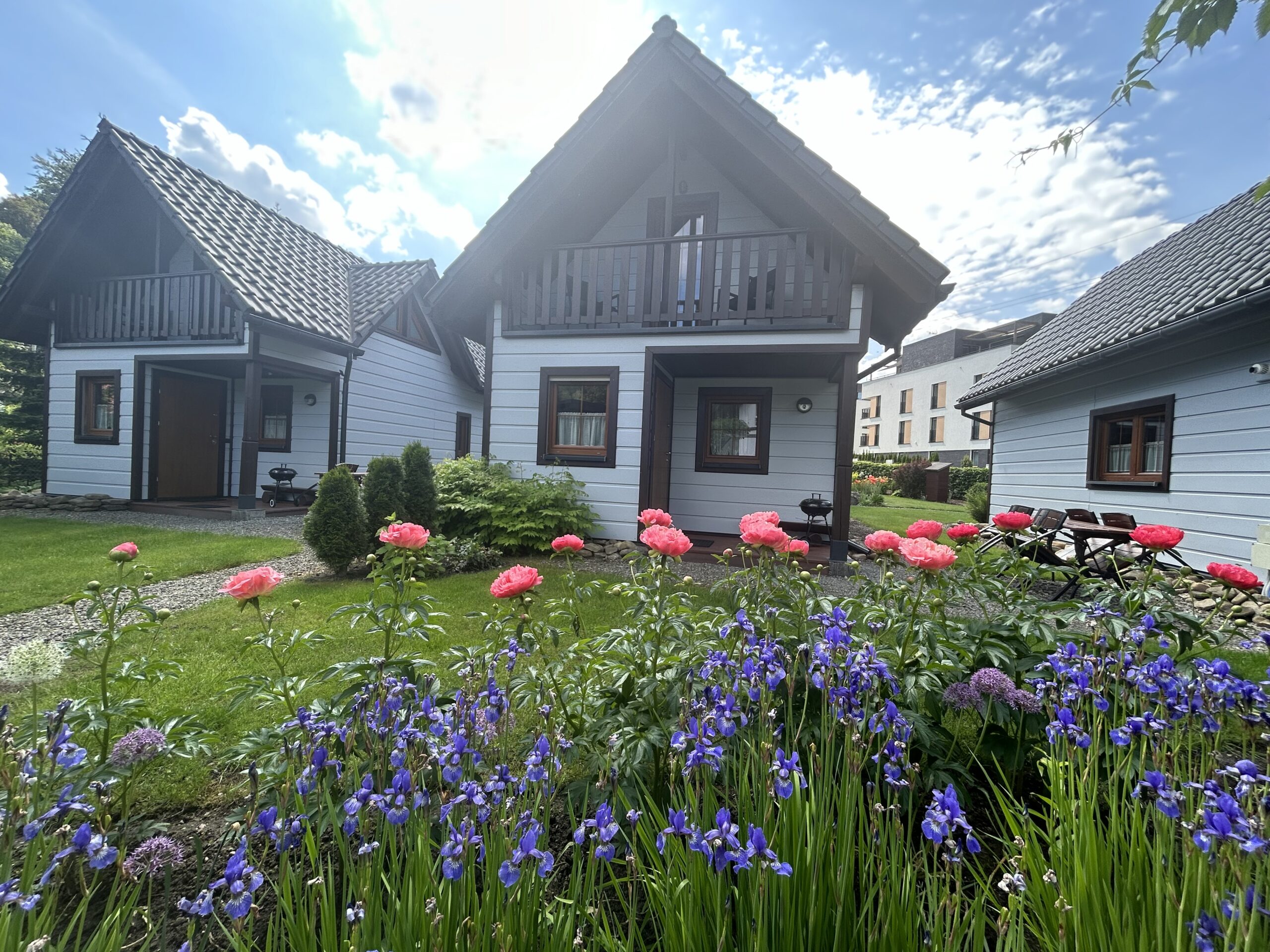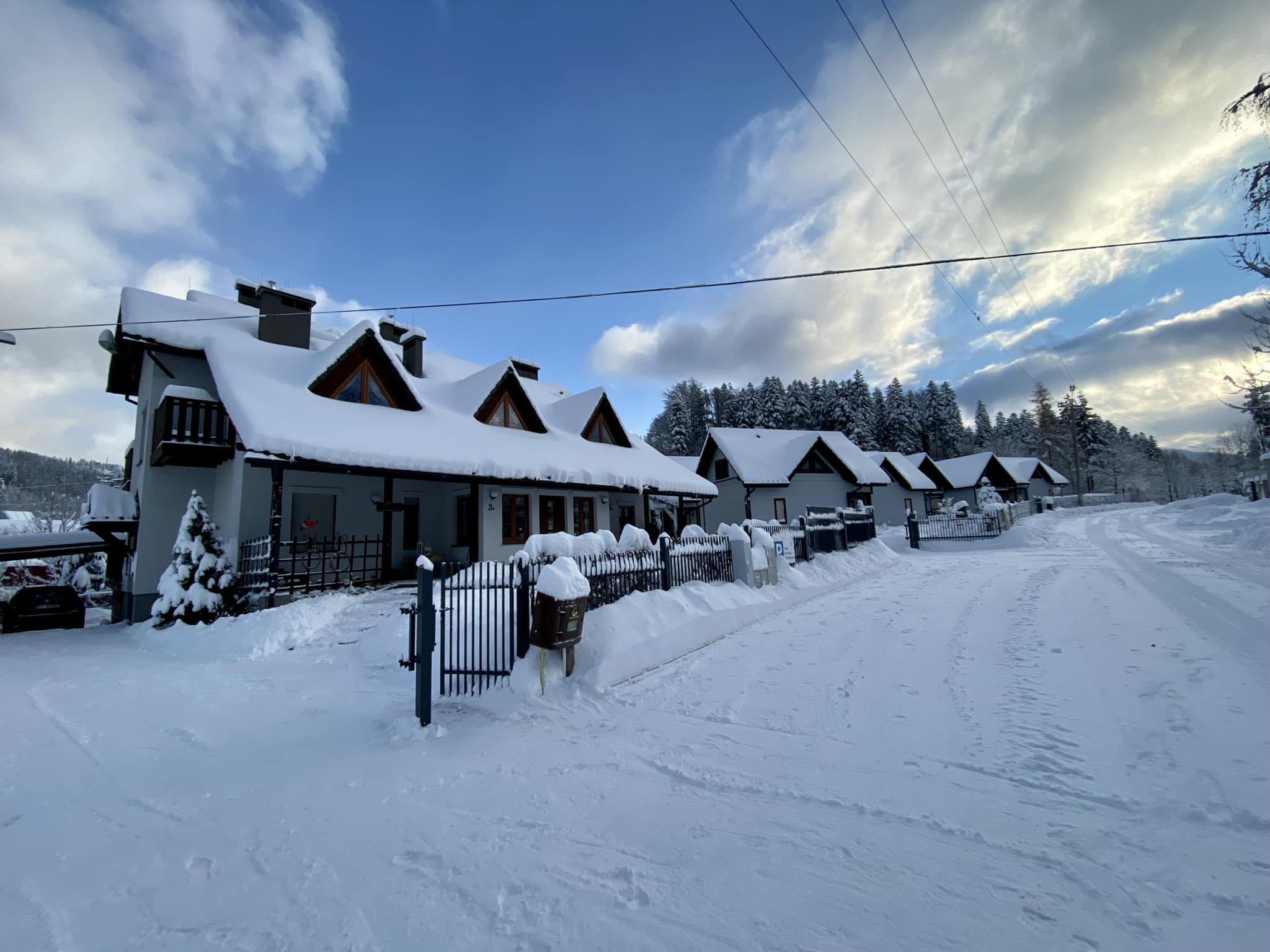Na terenie ośrodka znajduje się 8 całorocznych domków. Każdy domek o powierzchni ok 33 m2 składa się z pokoju dziennego z aneksem kuchennym, łazienki, wiatrołapu i zadaszonego ganku na parterze. Na piętrze każdego domku znajdują się dwie sypialnie (w każdej sypialni po dwa łóżka: 90cm oraz 120cm) oraz garderoba. Każdy domek posiada balkon.