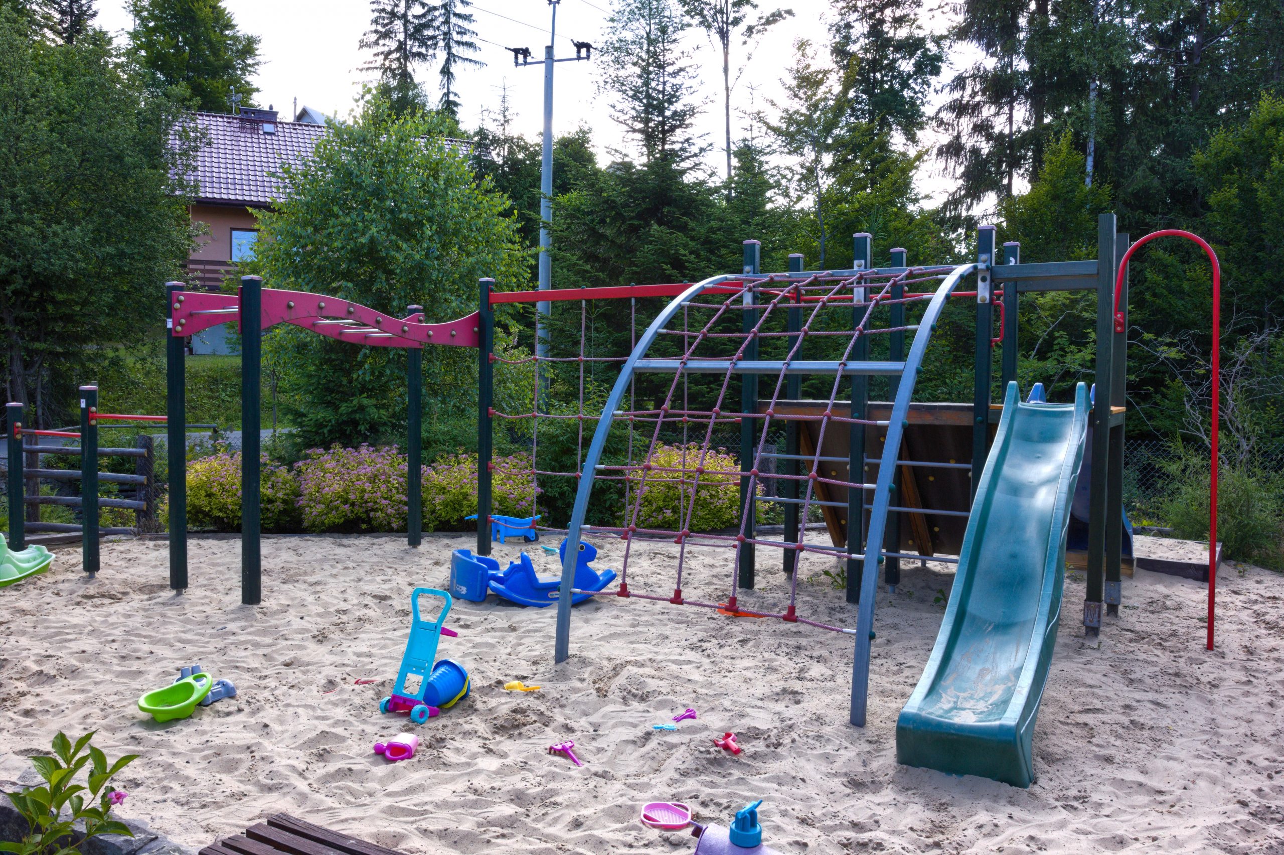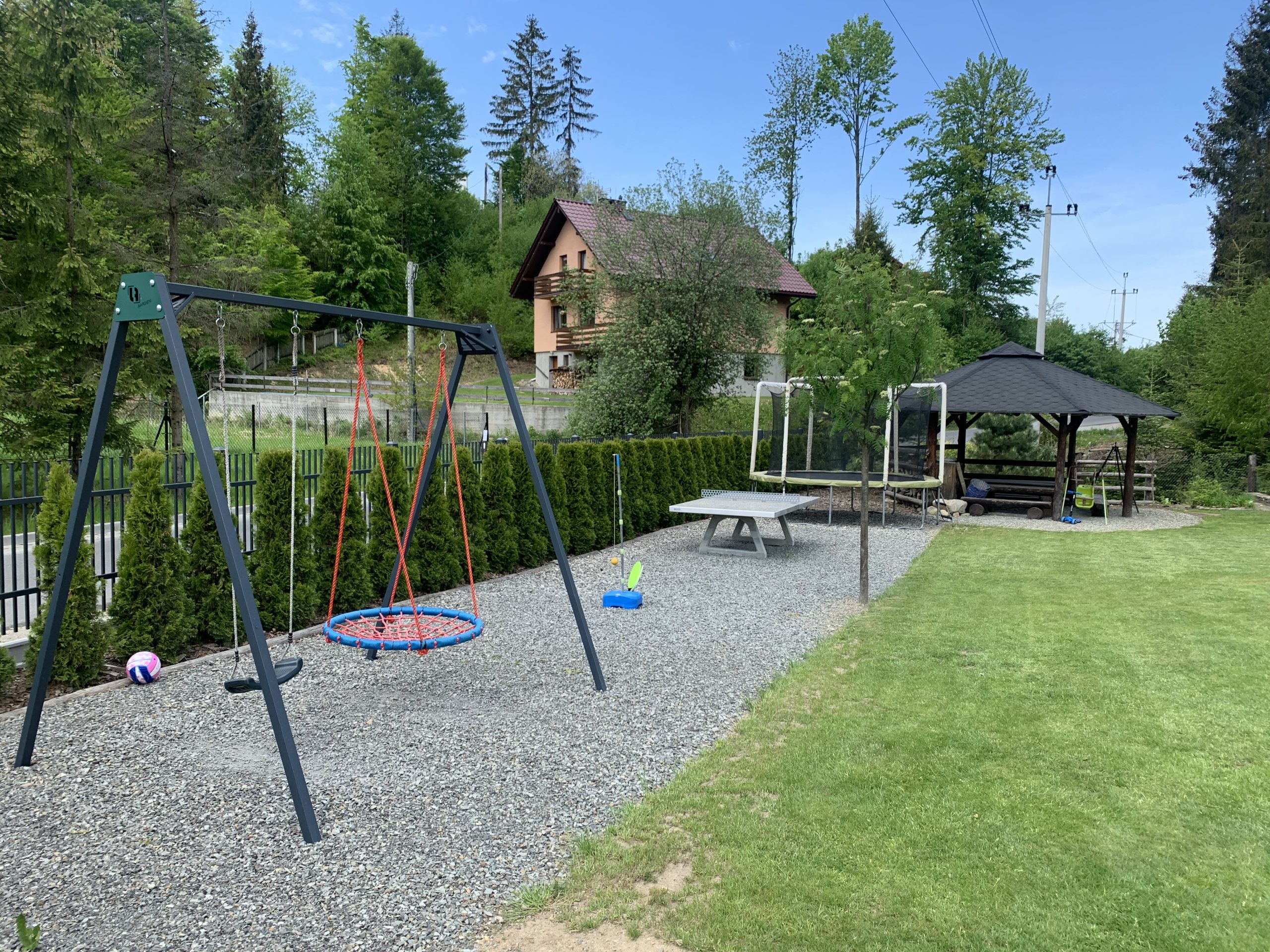 na terenie znajduje się plac zabaw (huśtawki i piaskownice)